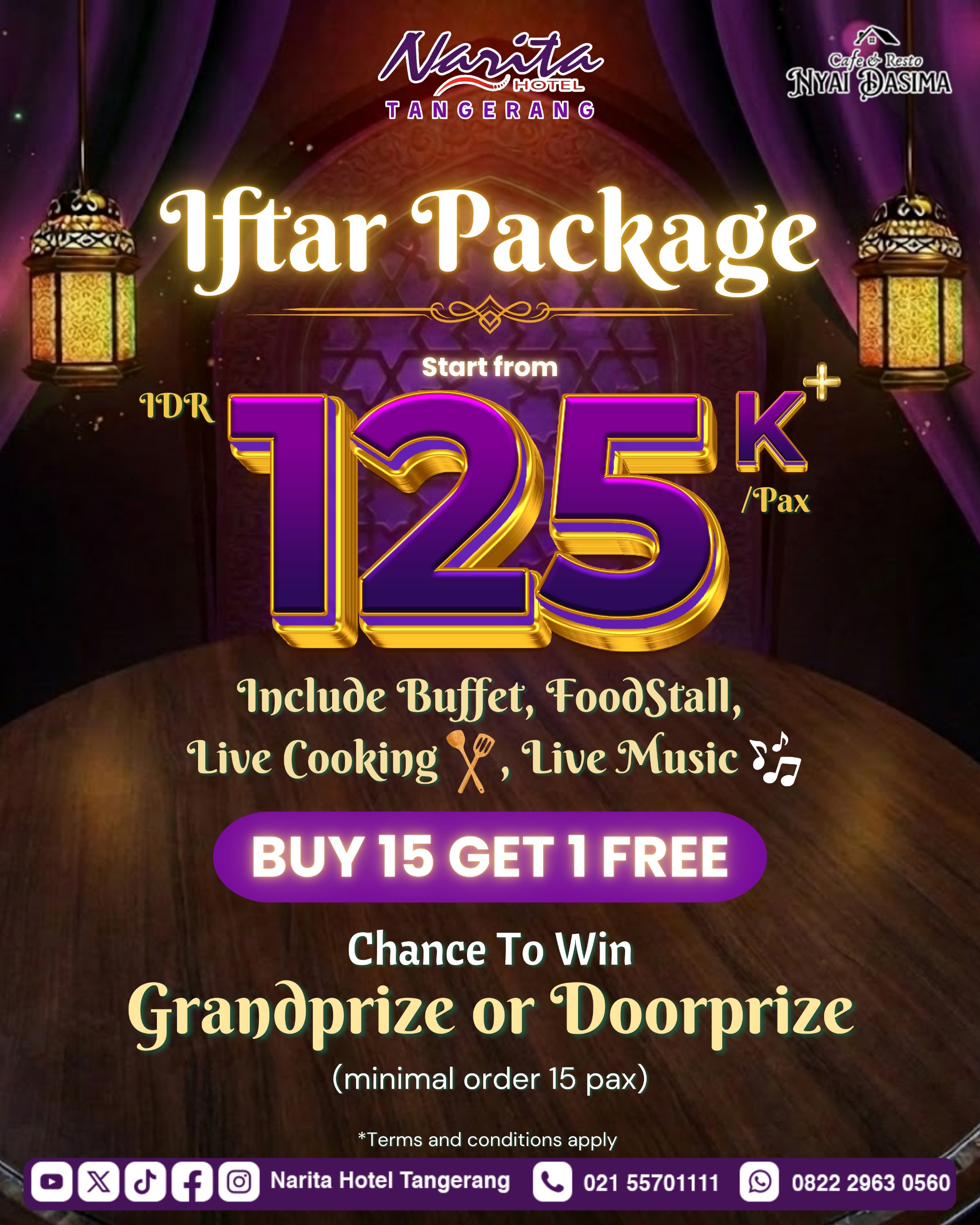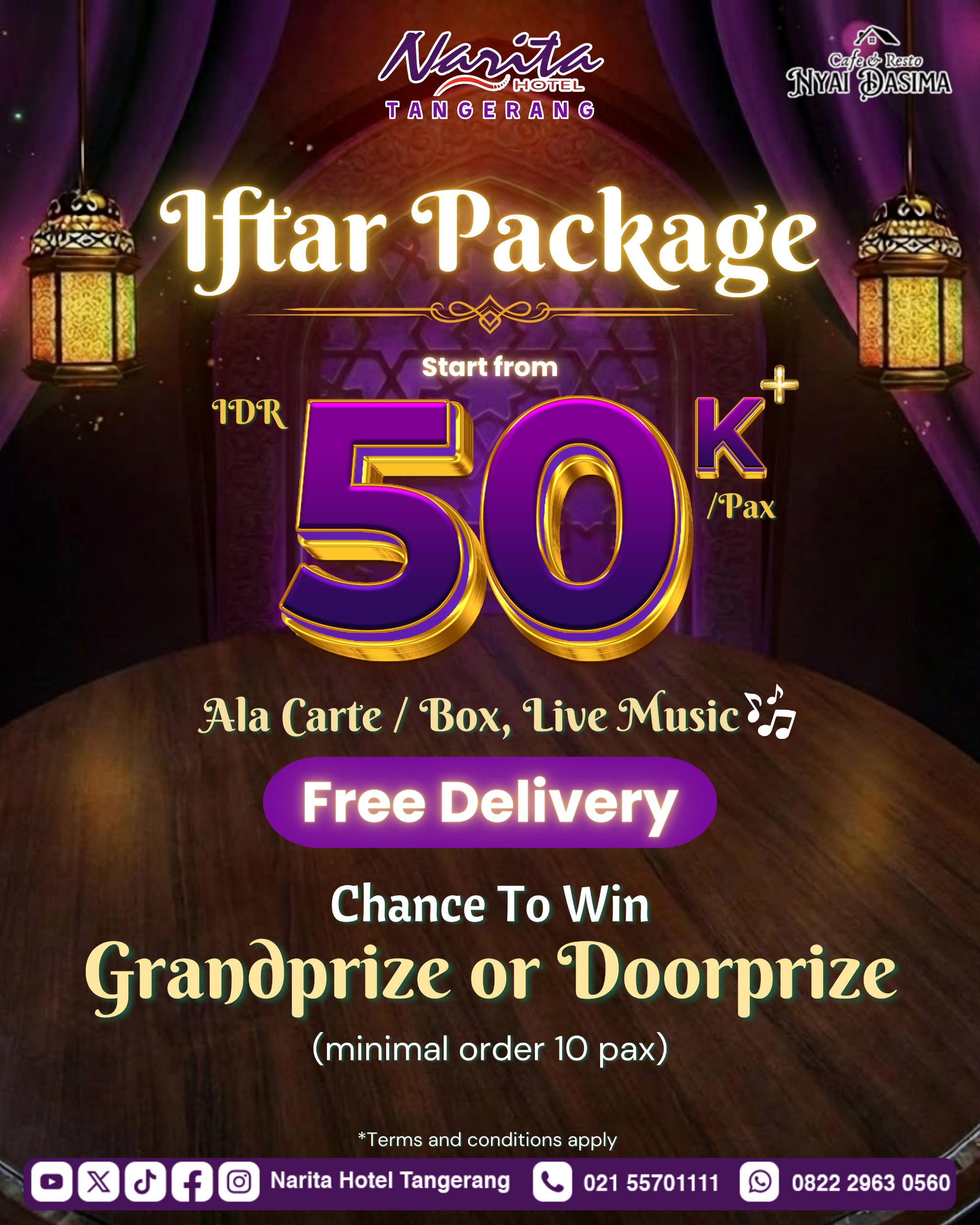 Selain itu setiap pengunjung juga berkesempatan untuk mendapatkan hadiah Doorprize dan Grandprize yang akan diundi tanggal 28 Maret 2026 melalui media sosial IG dan TikTok Narita Hotel Tangerang.