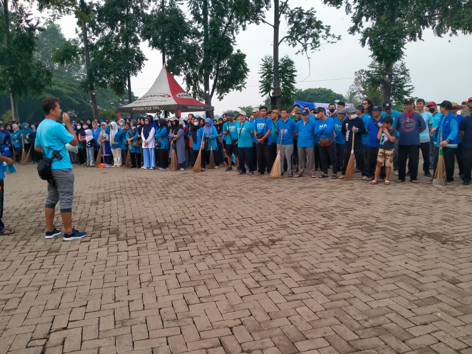 Kegiatan apel yang diikuti ratusan jamaah Ahmadiyah sebelum kerja bakti membersihkan sampah bekas malam tahun baru 2024 di Situ Cipondoh.(ist)