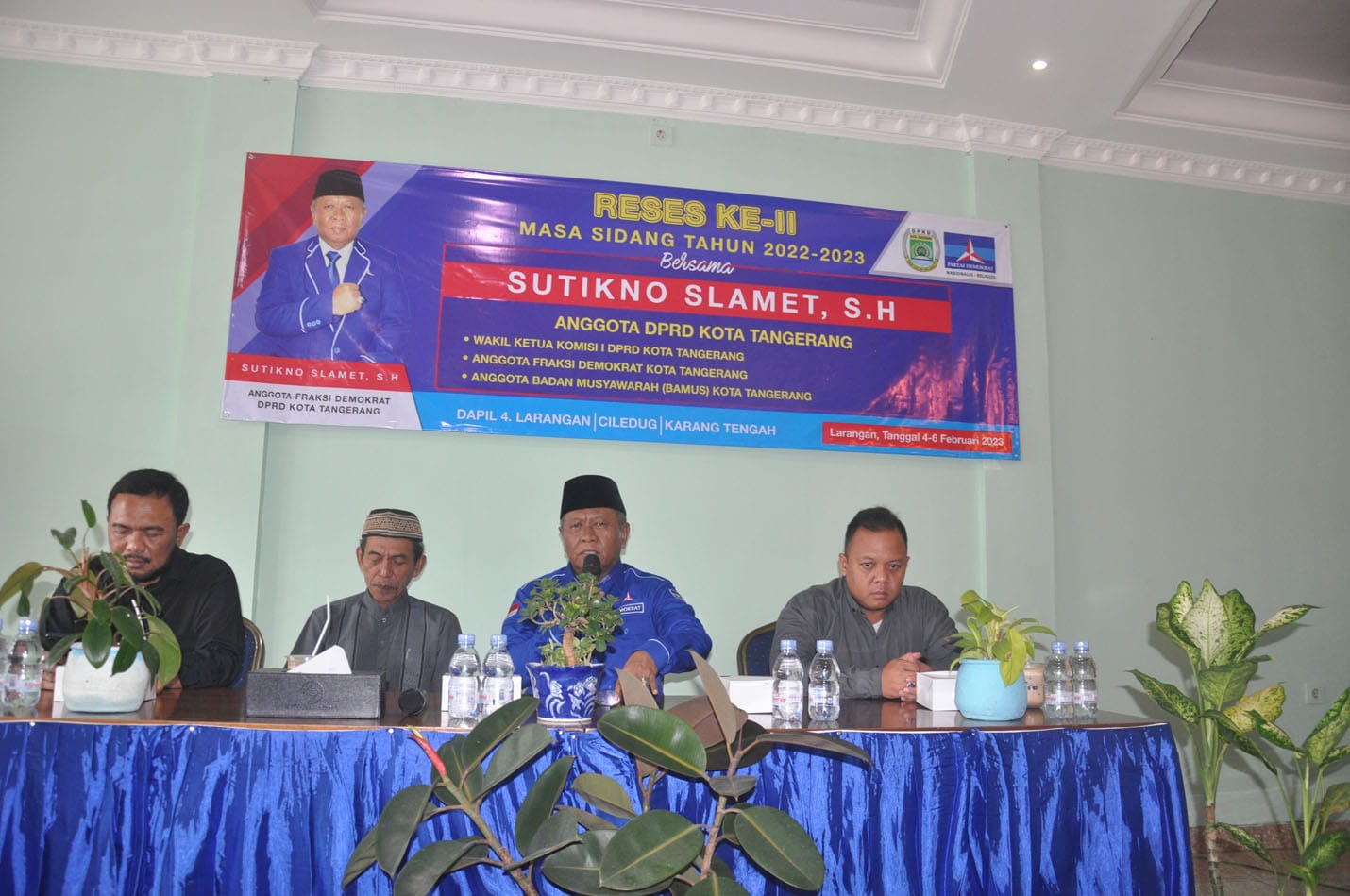 Tangerang,jagadbanten.id – Dimasa reses ke -II tahun 2022-2023  menjadi reses  pertama, anggota DPRD Kota Tangerang dari Fraksi Partai Demokrat, Sutikno Slamet mengadakan dialog dan menampung aspirasi warga di Kecamatan Larangan, Kota Tangerang provinsi Banten, Minggu (4/2/23).