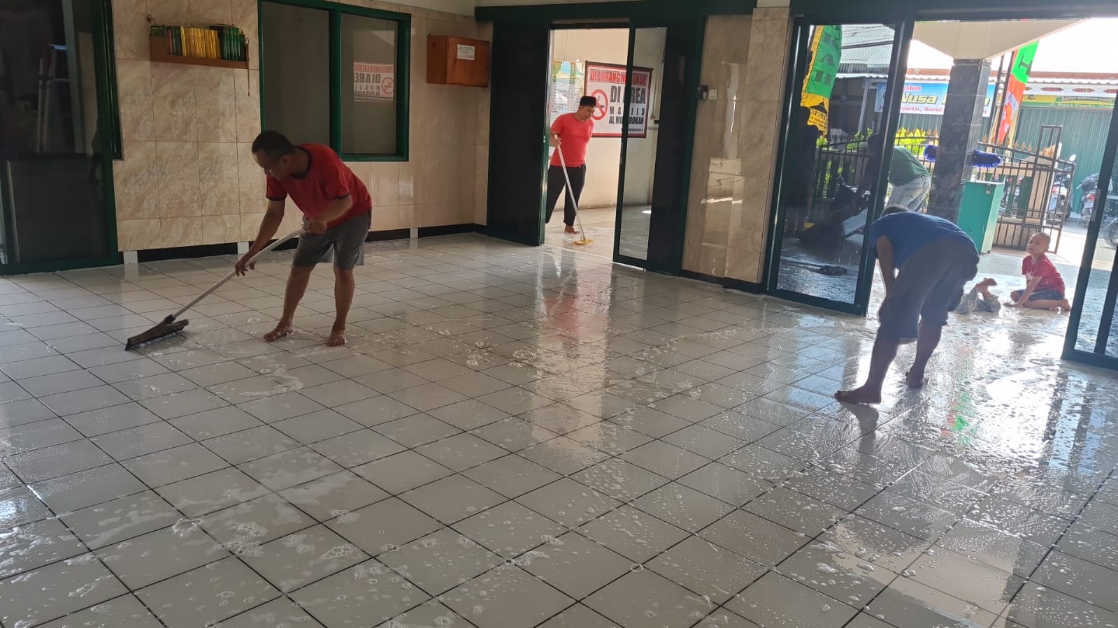 Bersih-bersih masjid yang berada di Jalan Prof DR Hamka, itu dilakukan oleh jamaah dengan bergotong-royong, penuh semangat dan antusias. Kegiatannya dimulai sejak pagi hari.