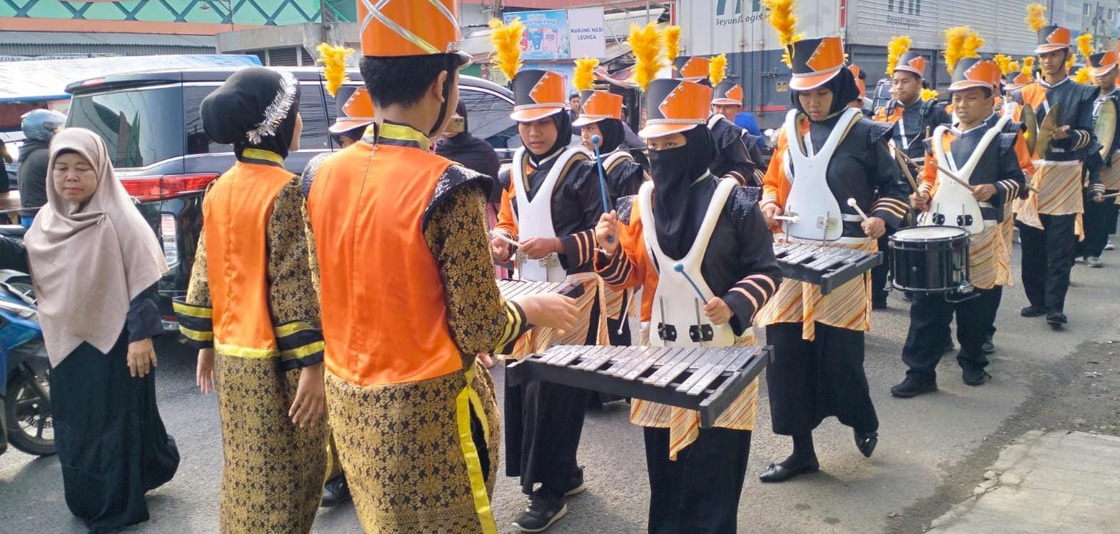 Antusias para siswa-siswi melakukan pawai dalam rangka tarhib Ramadhan menyambut bulan Ramadhan itu disambut positif masyarakat.