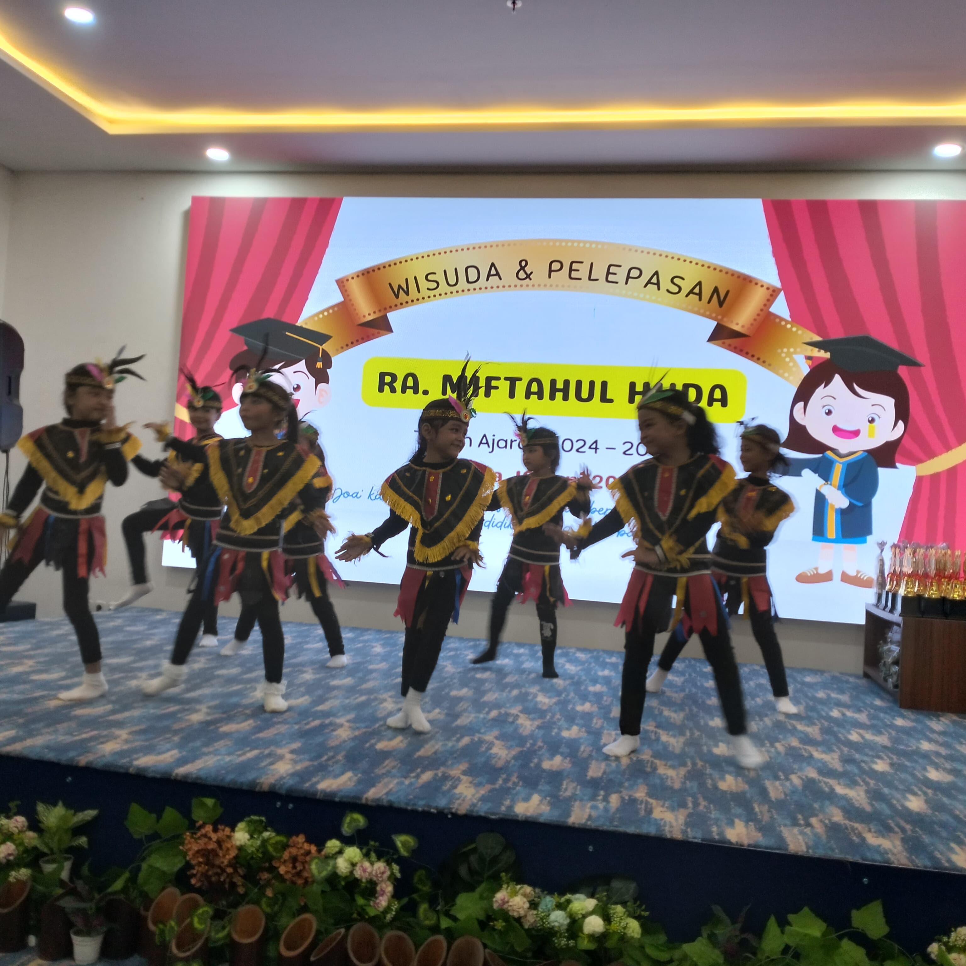 Para siswa – siswi RA Miftahul Huda itu tampil berani dan percaya diri menunjukan kemampuannya di depan ratusan orang tua siswa, para pengajar dan tamu undangan.